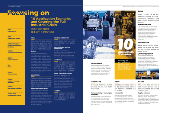 深度覆盖乘用车、商用车、工程机械及矿山机械、农业机械、船舶、发电机组、通用航空、园林机械、娱乐机械、机车及轨道车辆等10大核心应用场景。无论您关注动力优化、替代燃料,还是电驱动、燃料电池技术,亦或是传动系统、智能制造装备,这里都是您展示成果、对接需求、拓展商机的一站式核心平台。