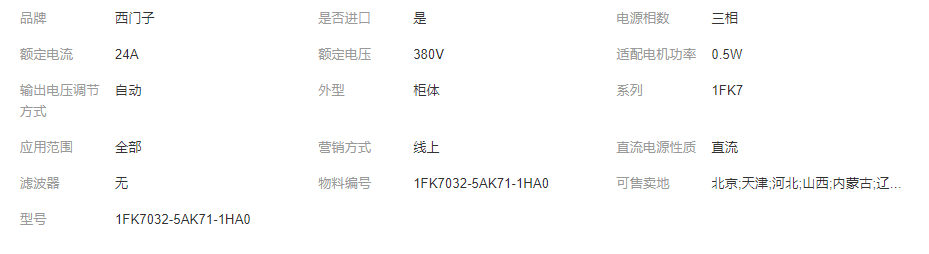 同步伺服电机 1FK7 紧凑型 1FK7032-5AK71-1HA0 0.50kW