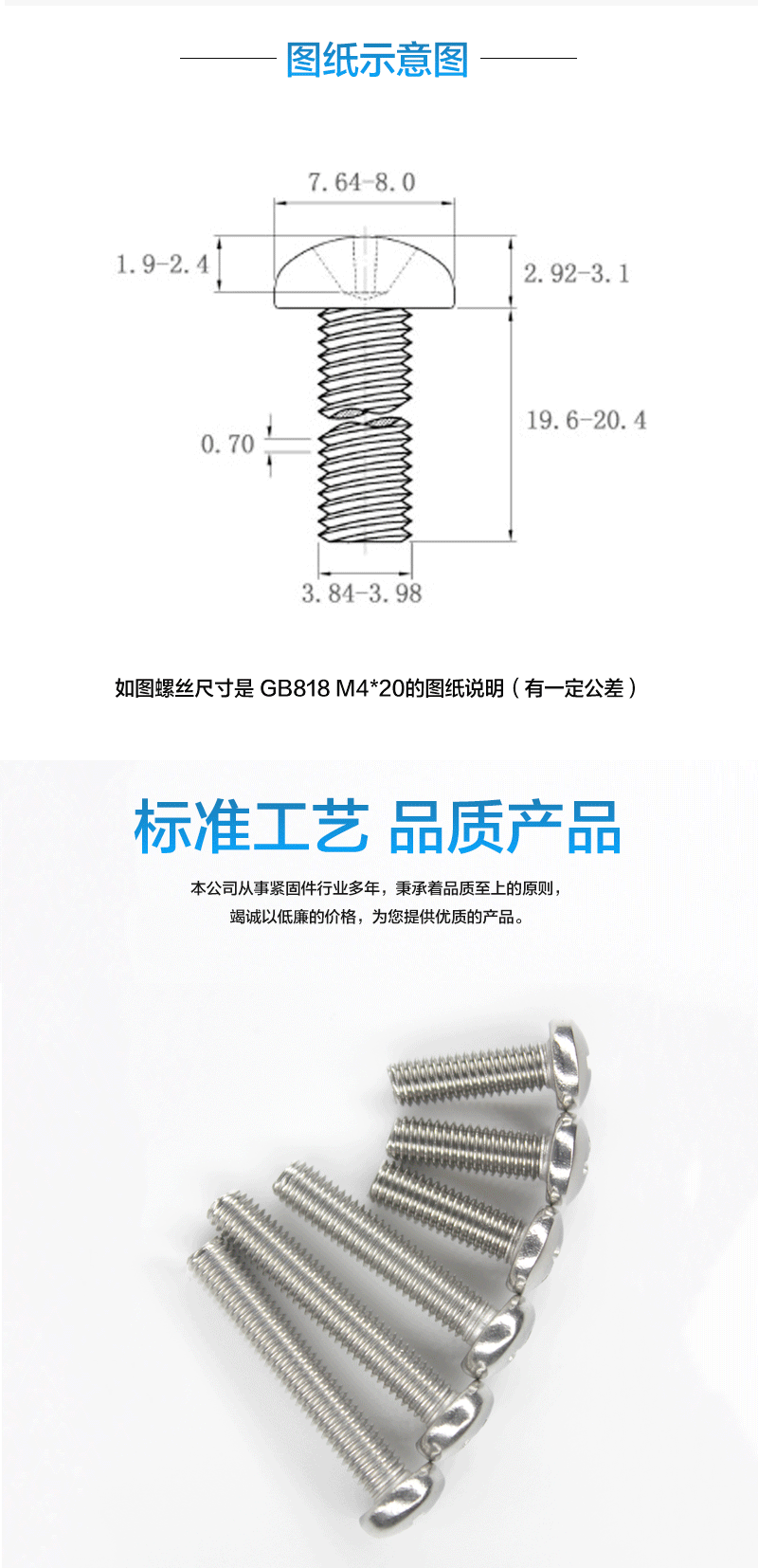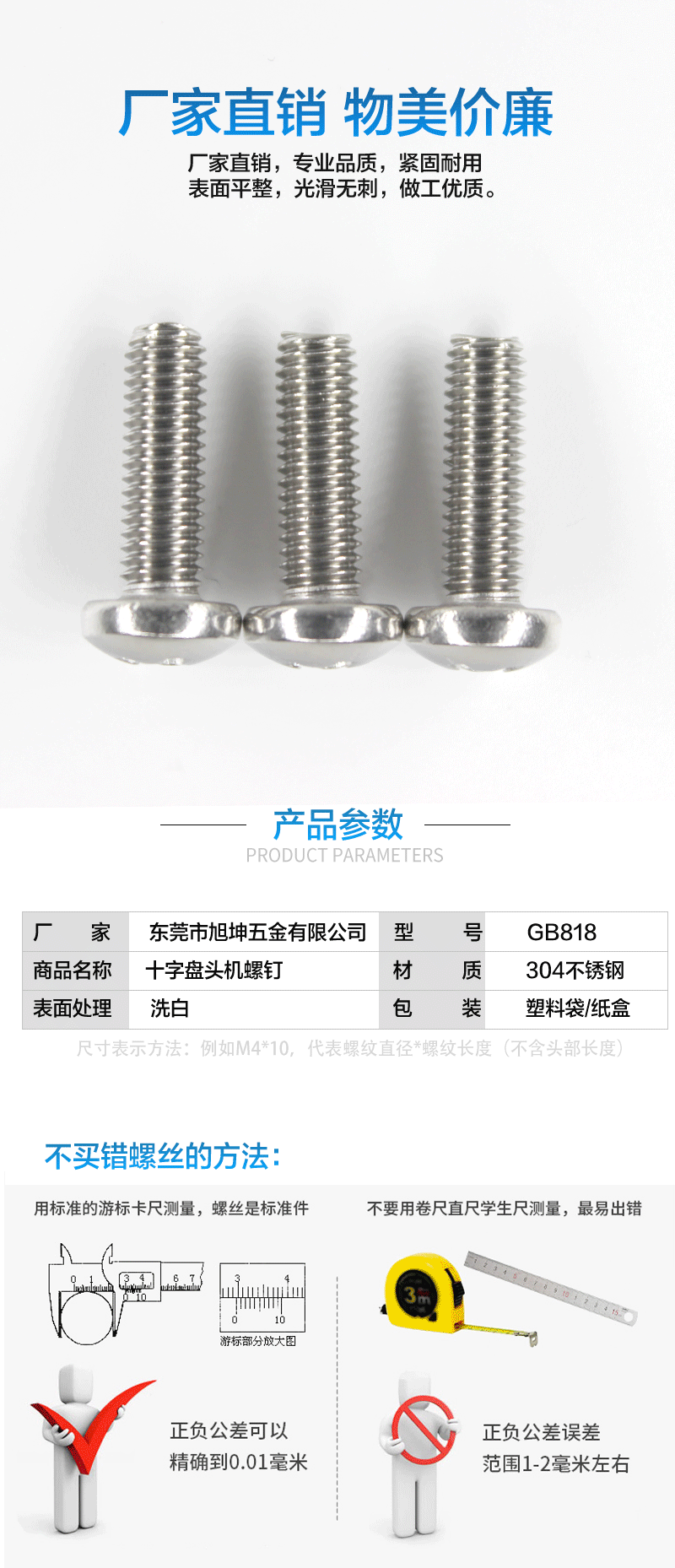 【M3 M4 M5】304不锈钢螺丝十字槽圆头螺钉 螺栓盘头螺丝 GB818