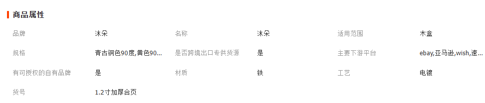 1.2寸平合页4孔90度180度木盒折页礼盒铰链内装外装铁活页批