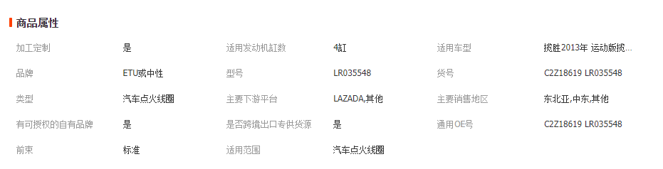 适用运动版揽胜 发现4 揽胜星脉 点火线圈 C2Z18619 LR035548