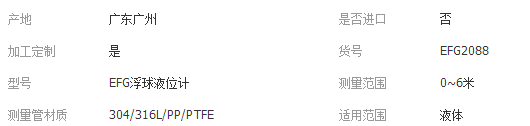 EFG系列磁性浮球液位计插入杆体的检测管内装有多个干簧管模组和精密电阻,当导杆外浮球随液位上下变化时,插入杆检测管内位于液面处的干簧管模组依次接通使磁性浮球液位计的电阻值发生变化,位于接线盒内的转换电路模块将其阻值转换成4~20mA电流信号远传至控制室DCS系统或二次仪表,可以显示及实时监控液位的变化情况。磁性浮球液位计有不锈钢SUS304,SUS316,SUS316L,PP,PVDF,PFET等多种材质可供选择,适用于各种工业环境下介质的液位测量。磁性浮球液位计常用于石油、化工原料、生物化学、医药制药、食品饮料、加油站地下储罐等各种环境下液位测量与控制。