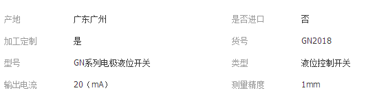 电极式液位开关主要技术指标
