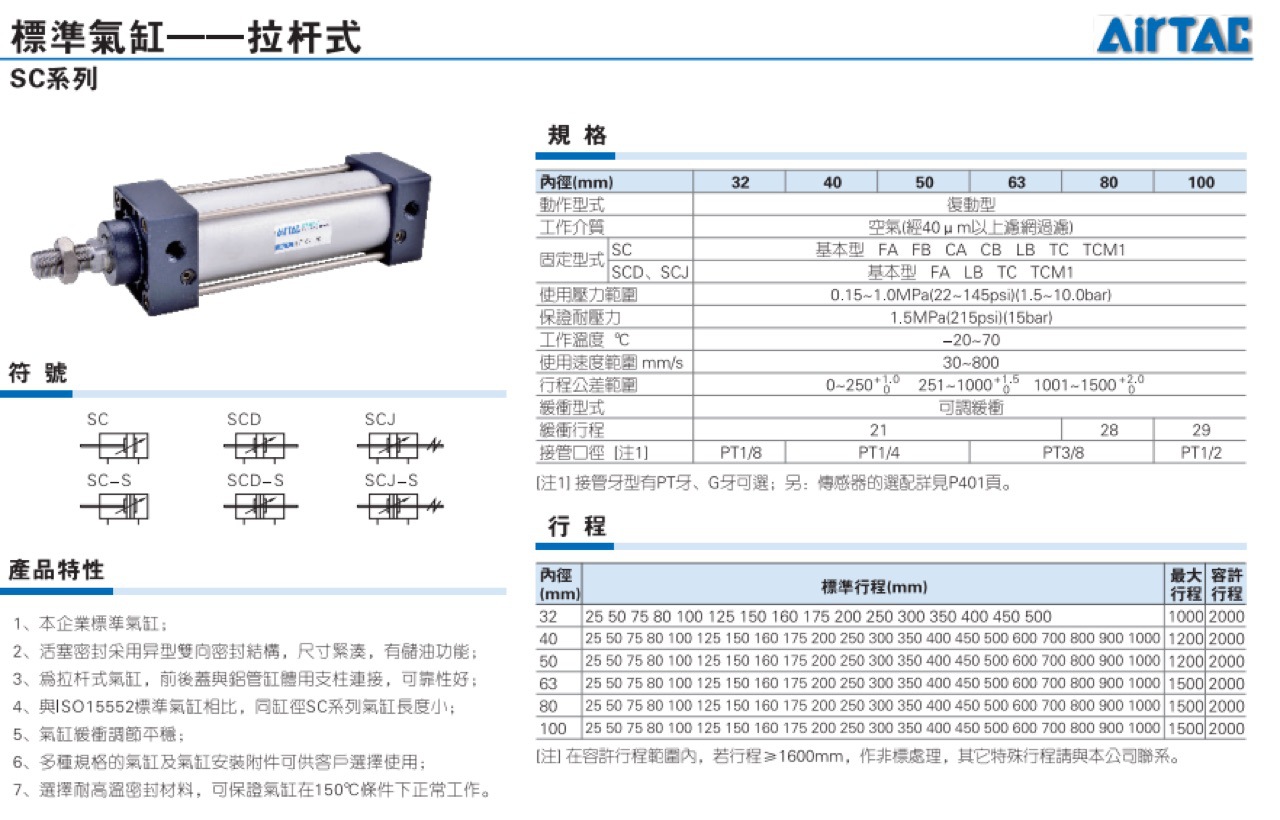 Air TAC亚德客原装正品标准气缸SC80系列