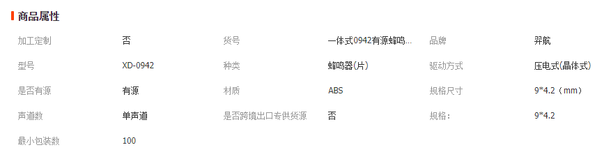 厂家供应高音质蓝牙音箱用蜂鸣器一体式0942有源蜂鸣器