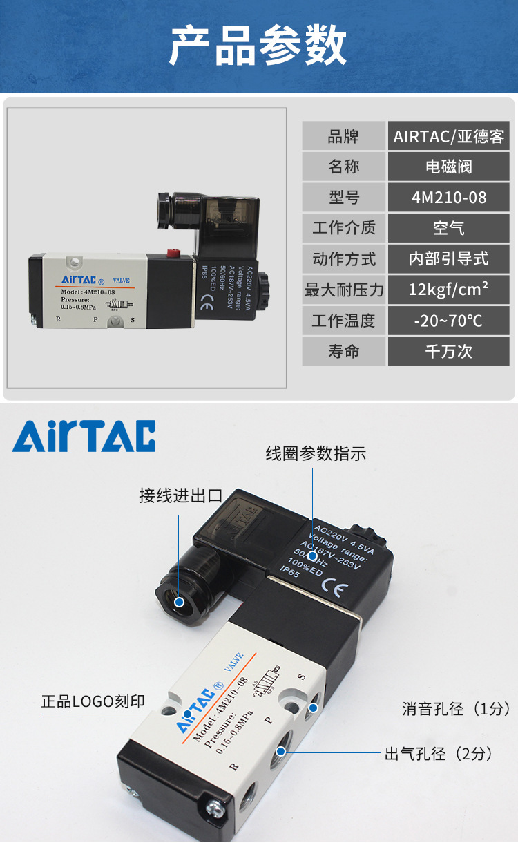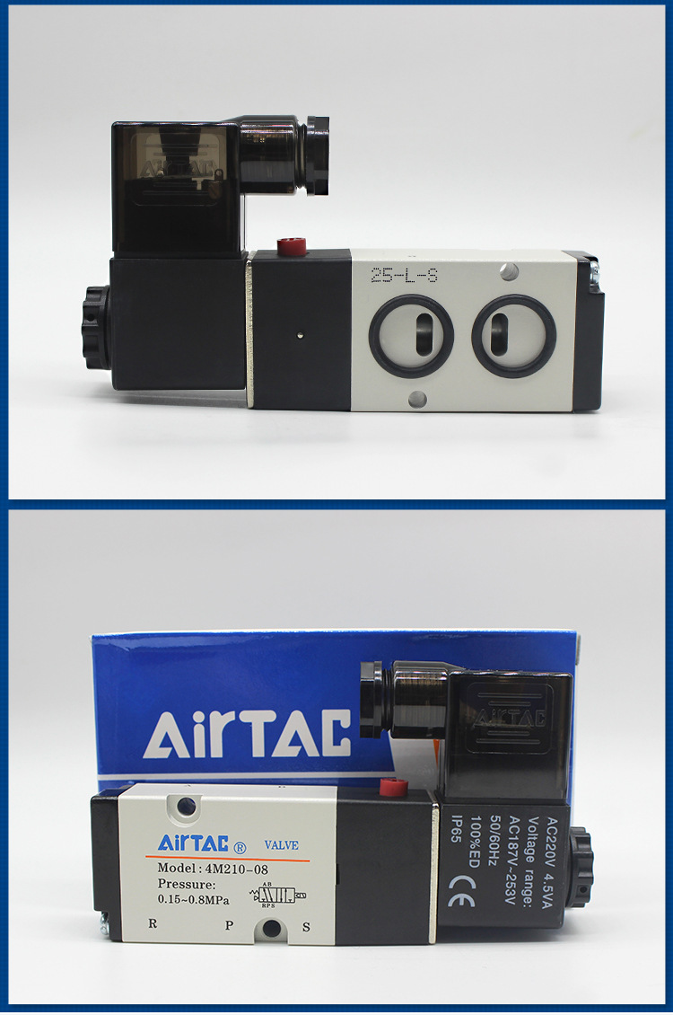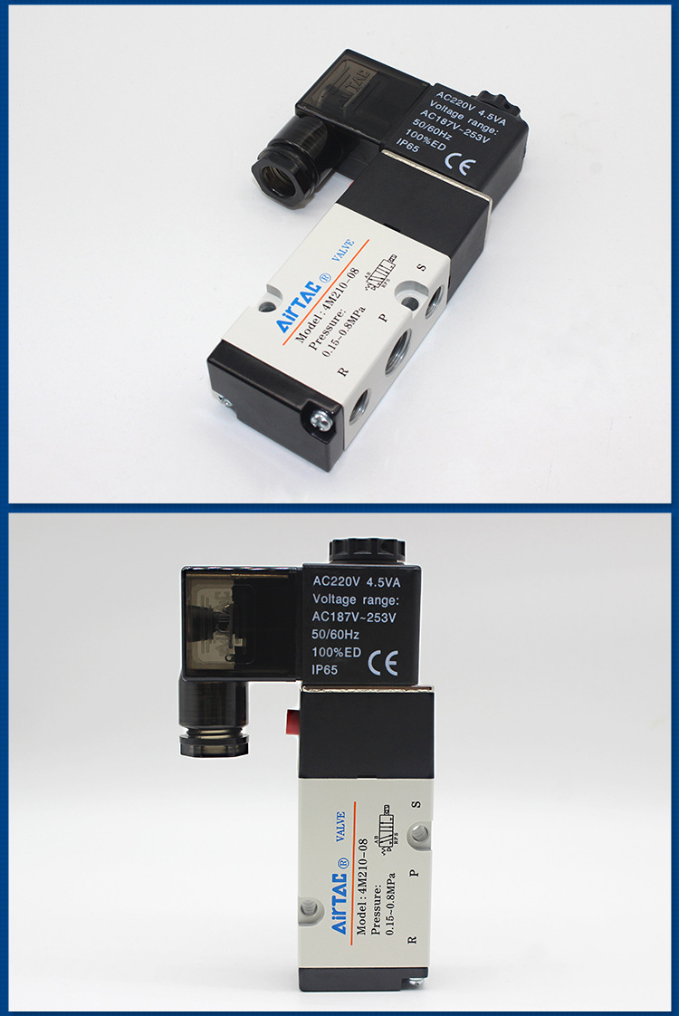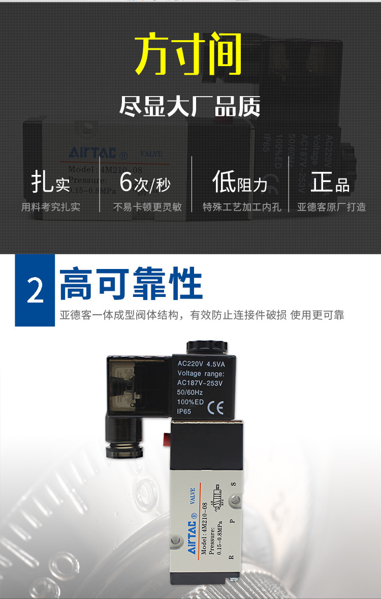 亚德客电磁阀4M110-06气动电磁控制阀220v换向阀4M210-0 8气阀24v