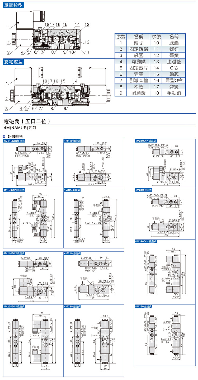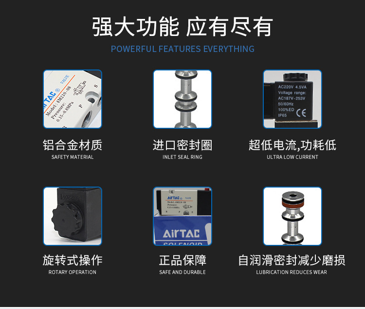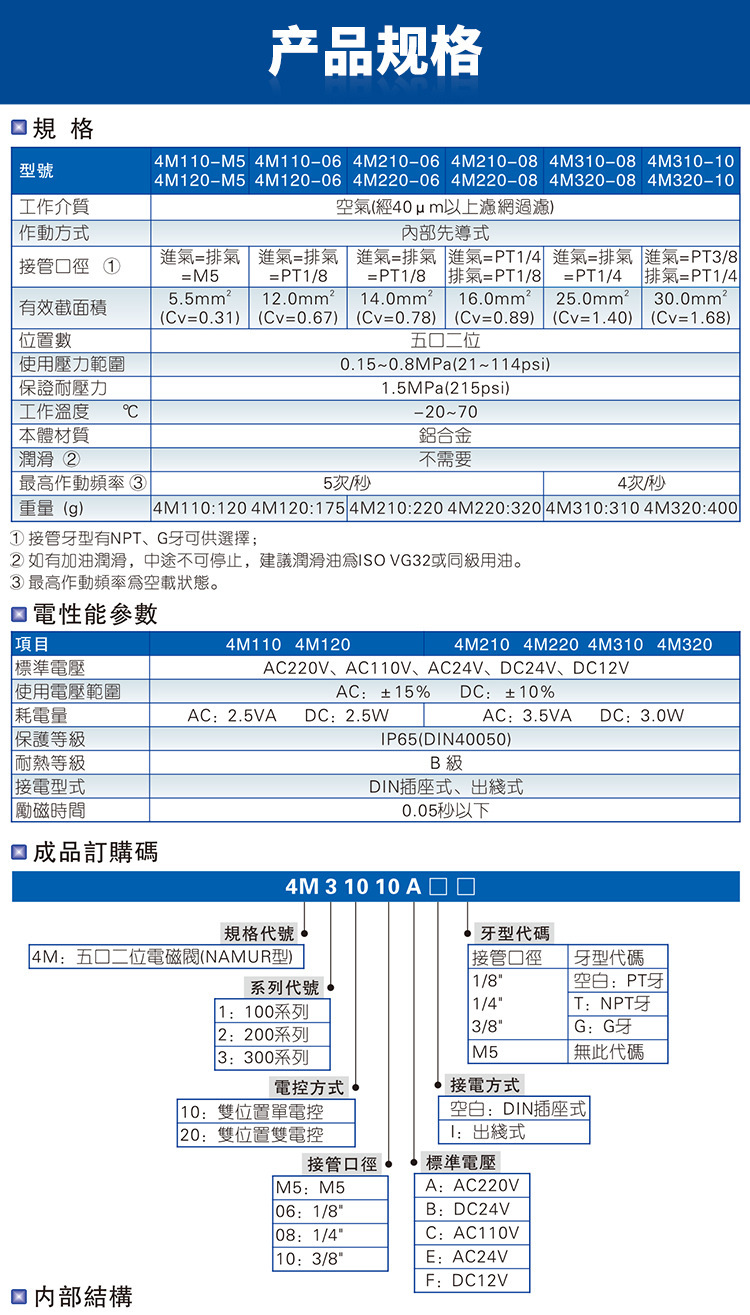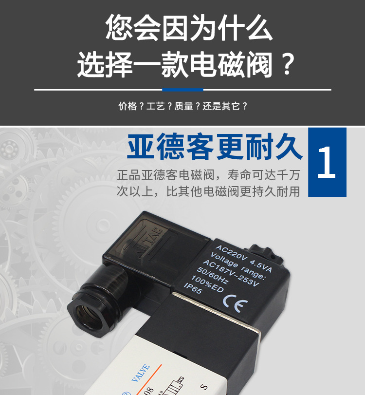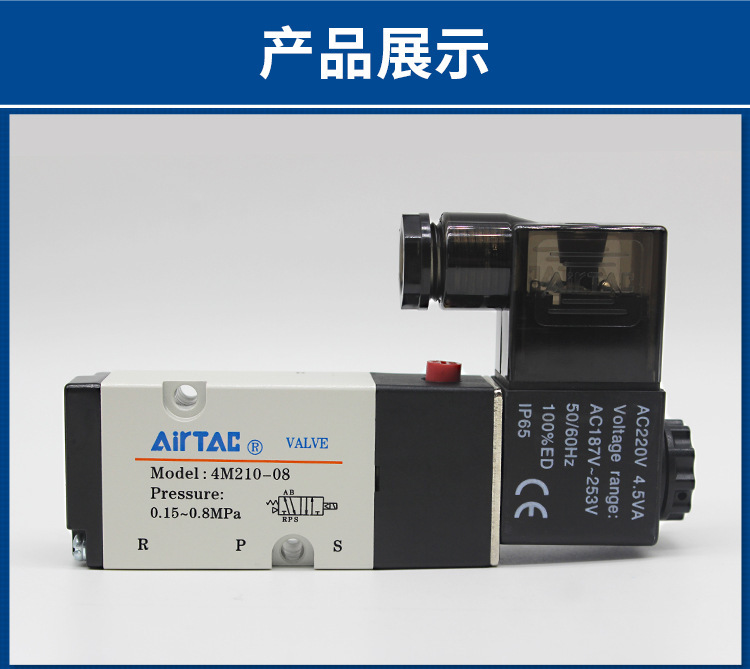 亚德客电磁阀4M110-06气动电磁控制阀220v换向阀4M210-0 8气阀24v