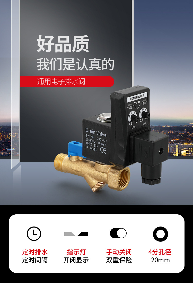 电子排水阀器自动开关OPT-A分体OPT-B连体放水阀定时电磁阀D24 VAC