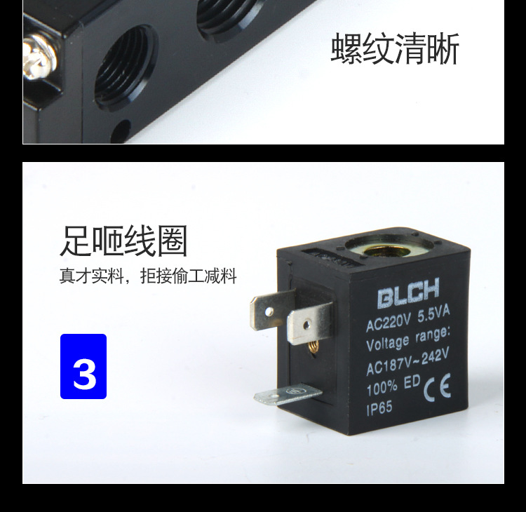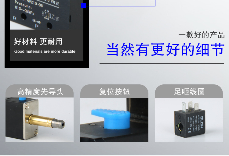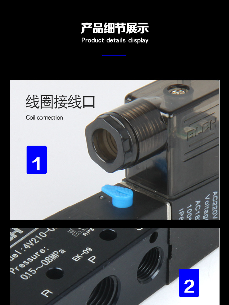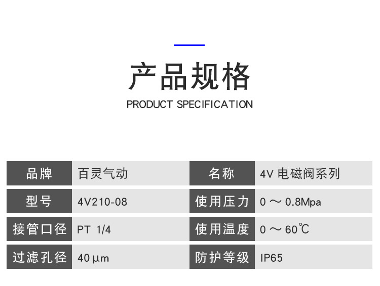 BLCH/百灵气动二位五通单头电磁阀4V210-08 AC220V/DC24V