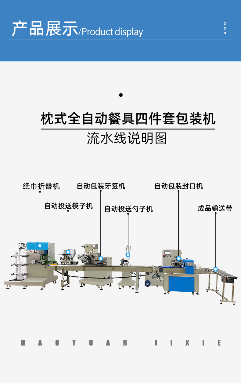 加工定制枕式包装机流水生产线全自动筷子四件套一次性餐具包装机