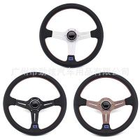 汽车改装通用ND14寸红白双线黑色皮革凹架方向盘赛车通用方向盘