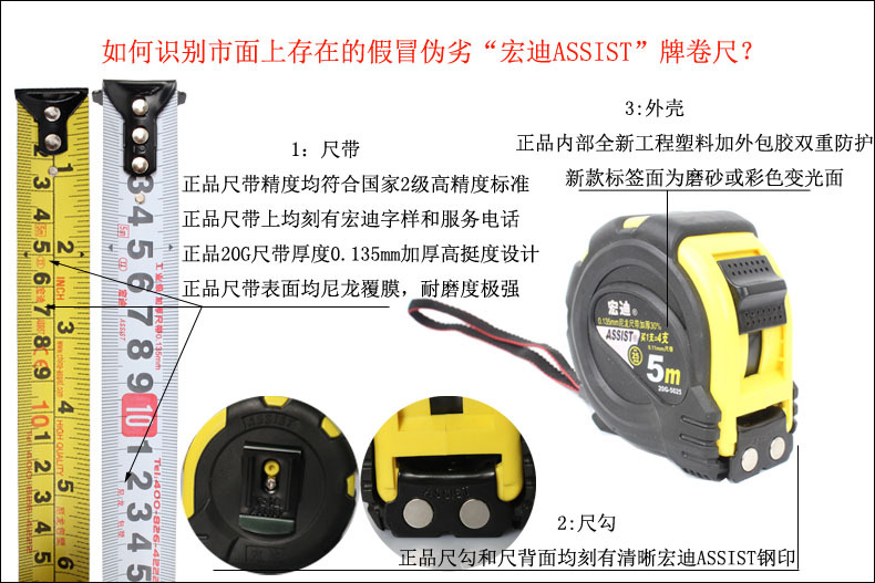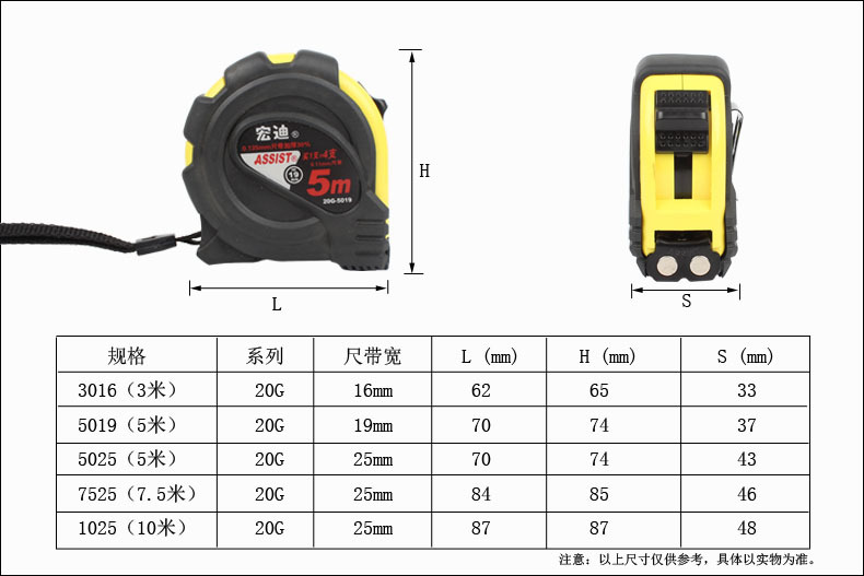 宏迪Assist高精度3米5米7.5米10米包胶钢卷尺 20G测量尺 拉尺