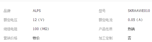 现货代理日本ALPS品牌贴片轻触开关:SKRAAWE010