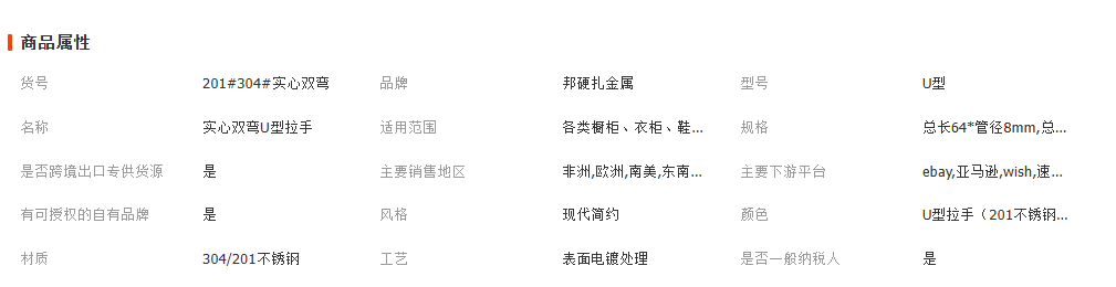 厂家供应实心衣柜门橱柜抽屉拉手不锈钢U型双弯拉手衣柜鞋柜拉手