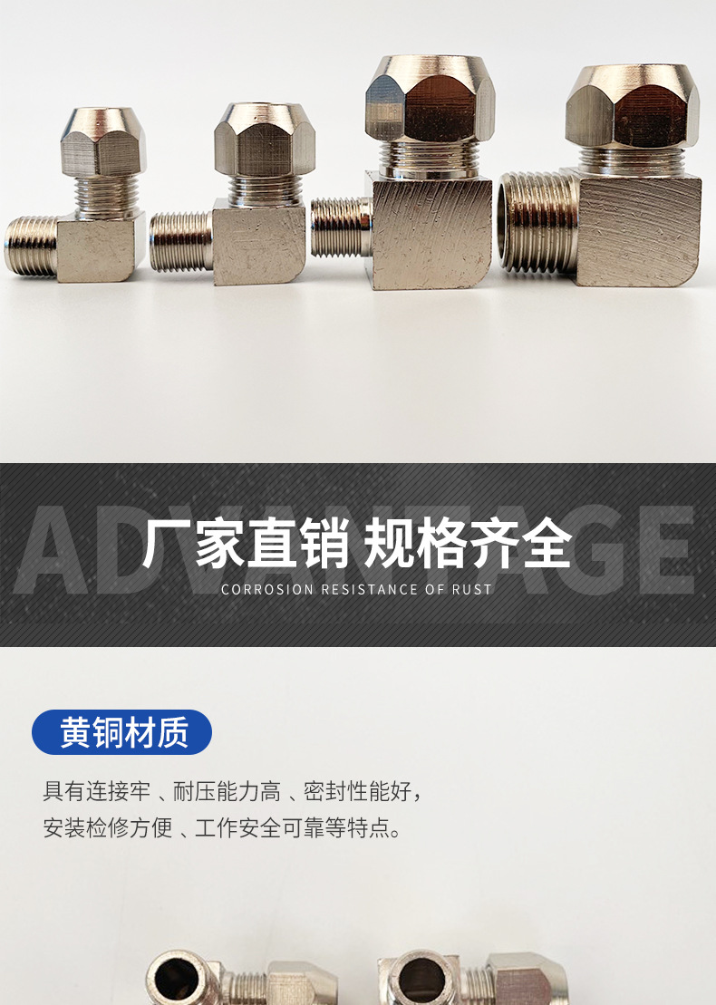 镀镍黄铜快排阀配件弯头卡套直角弯头铜管外丝弯头自控阀门配件