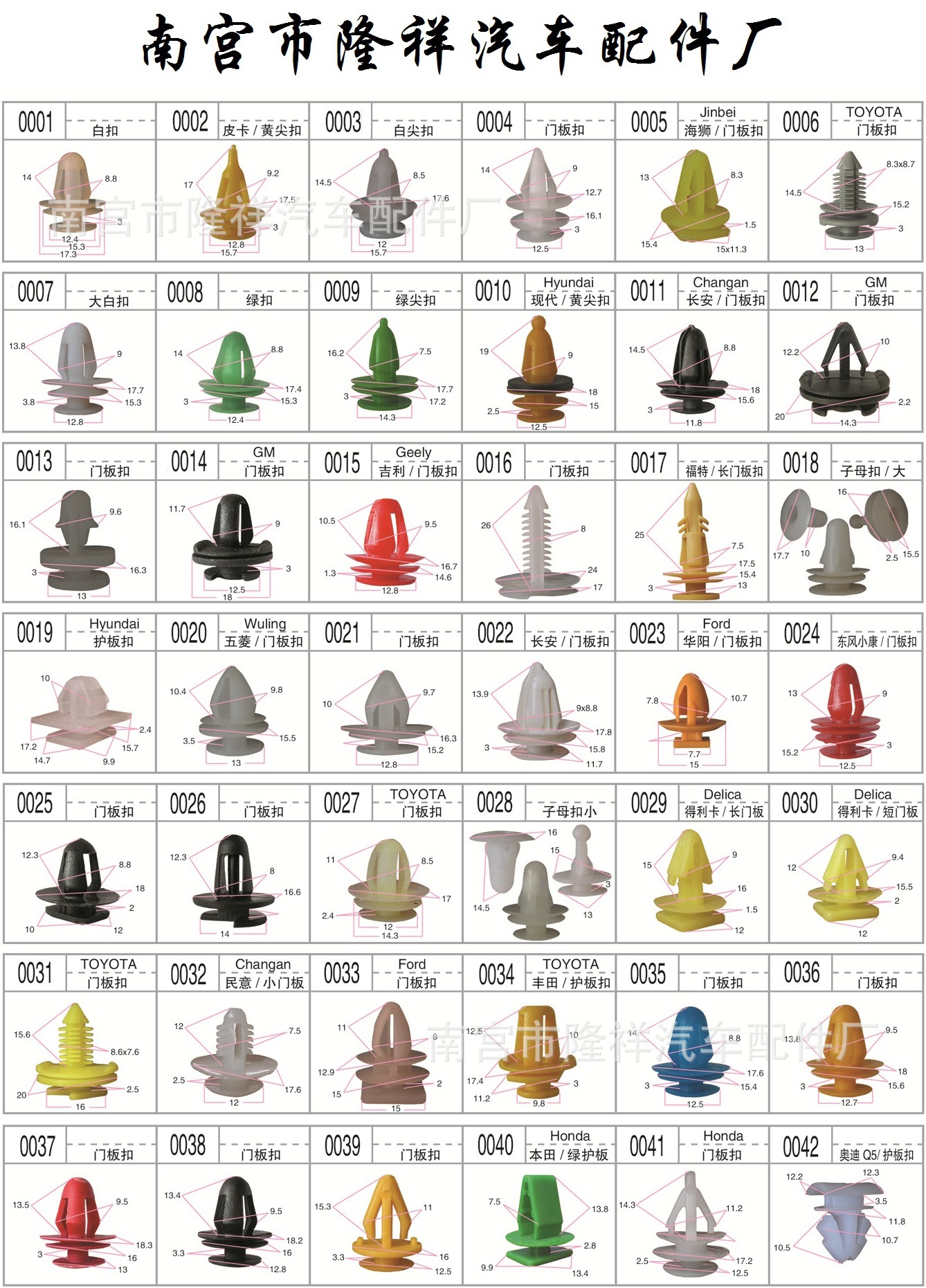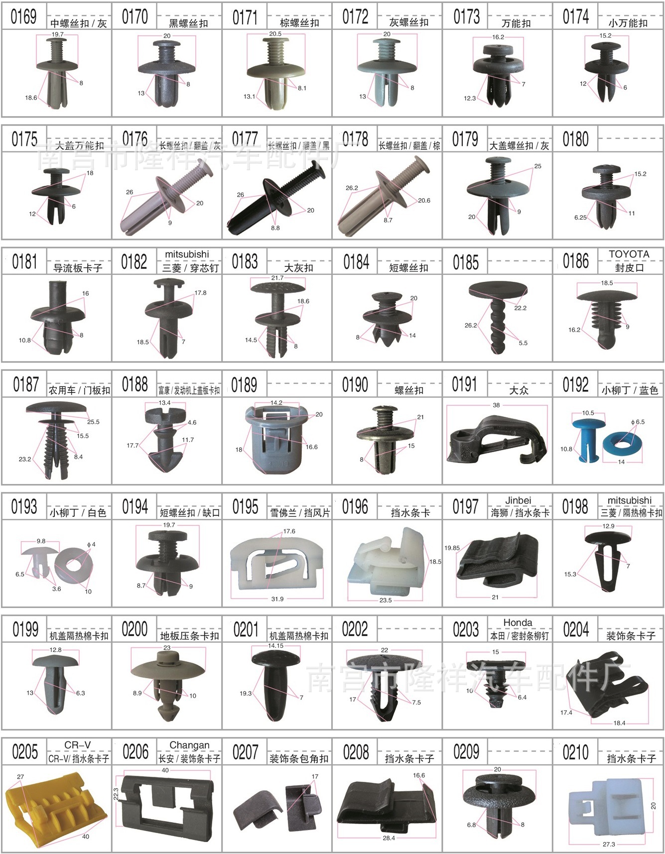 门板卡扣系列 顶蓬卡扣系列 膨胀螺丝系列 封皮卡扣系列 穿芯钉系列 密封条钉系列 ...