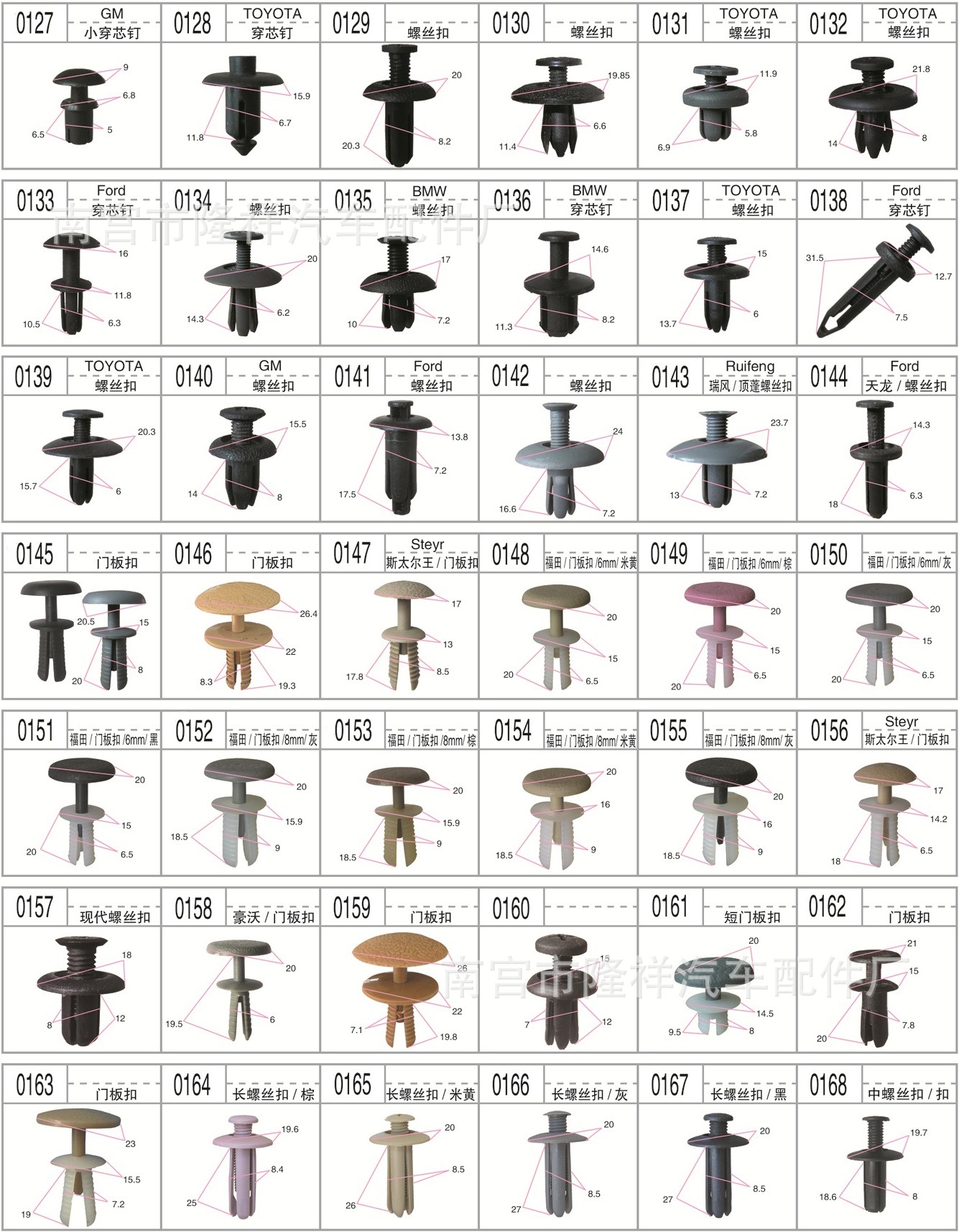 门板卡扣系列 顶蓬卡扣系列 膨胀螺丝系列 封皮卡扣系列 穿芯钉系列 密封条钉系列 ...