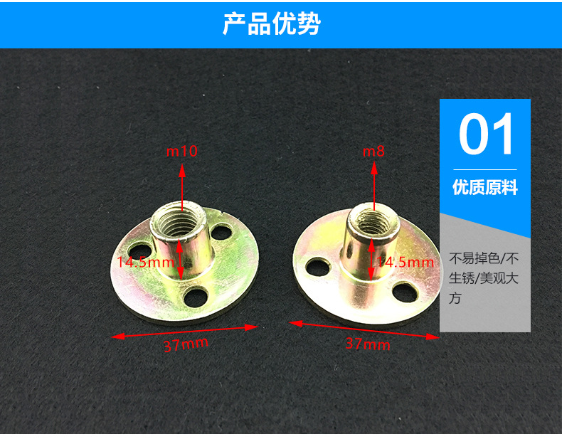铁板三孔螺母 冷镦三孔元母 m8m10夹板螺帽T母家具五金