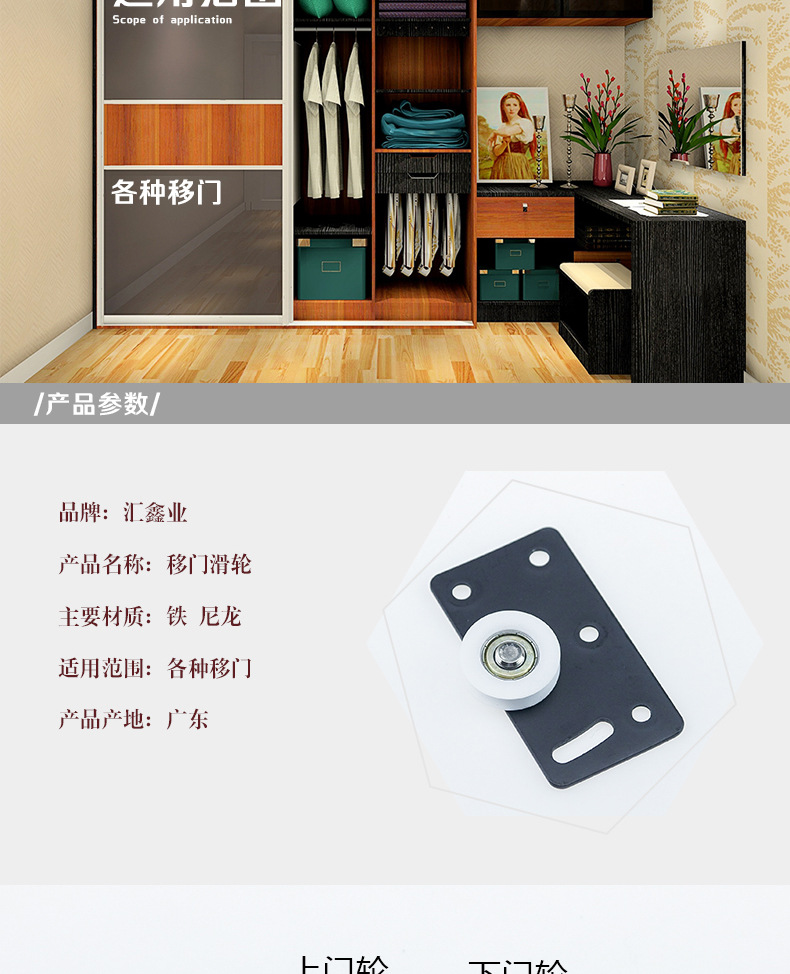 汇鑫业五金 衣柜移门轮 推拉门滑轮 橱柜轨道 B型趟门轮子配件