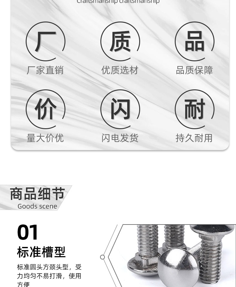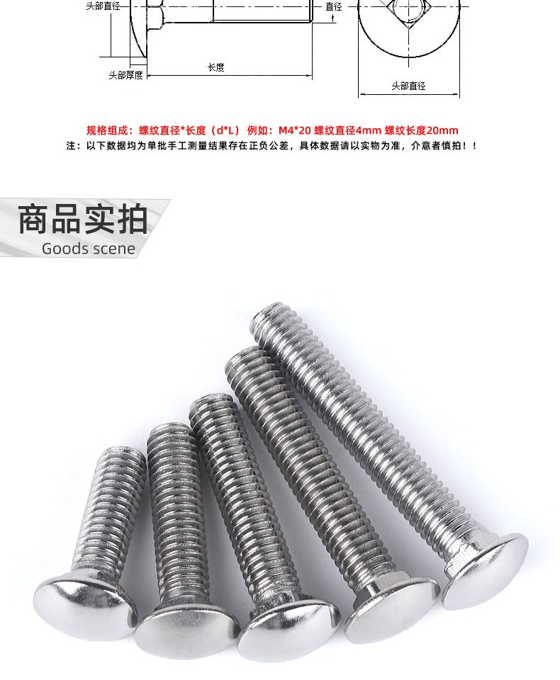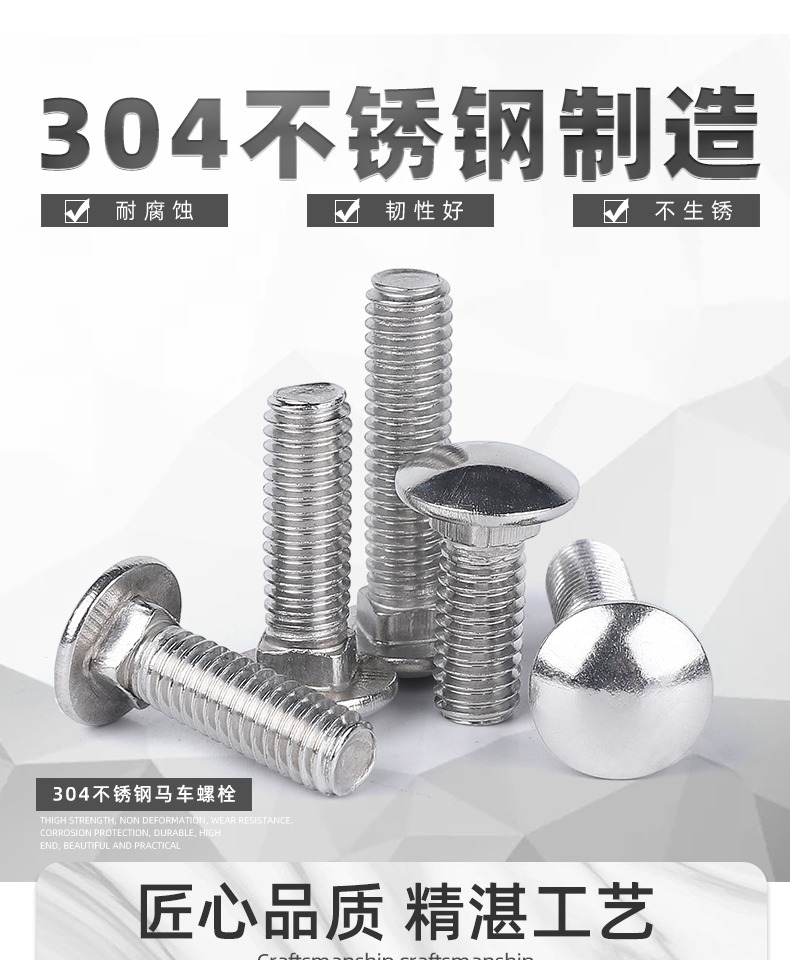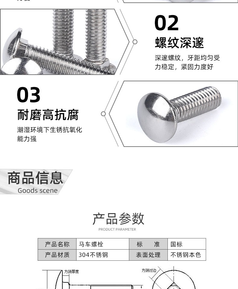 304不锈钢小头马车螺栓 GB12半圆头方颈螺丝货架螺钉扁头 M6-M12