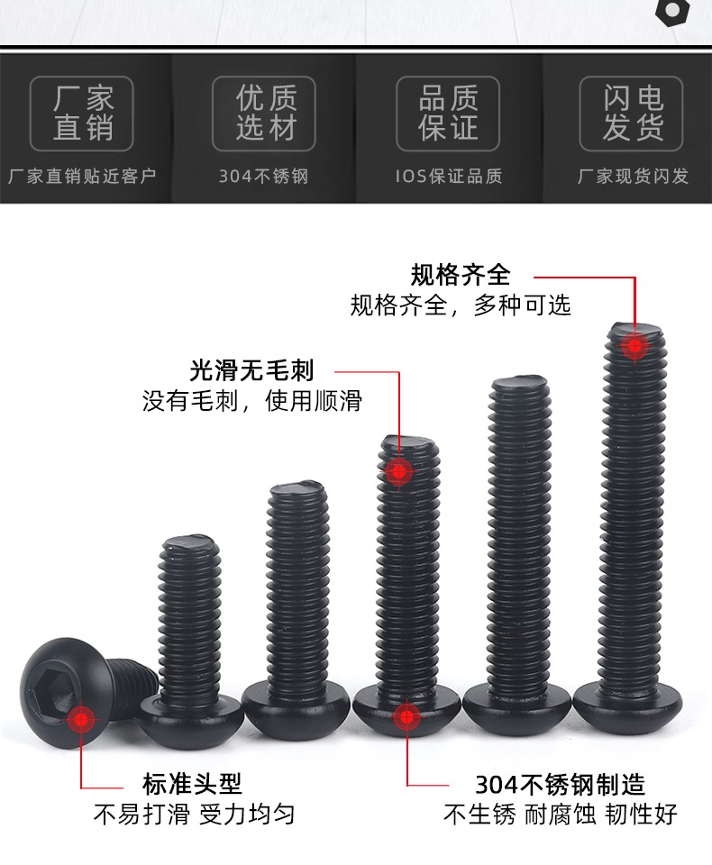 10.9级圆头内六角螺丝盘头内六角螺栓高强度黑色圆杯M2M3 M4M5-M12