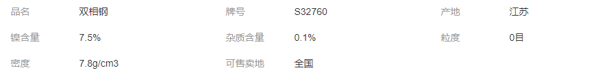 1、S32760(F55,1.4501)双相钢密度:8.0g/cm3,