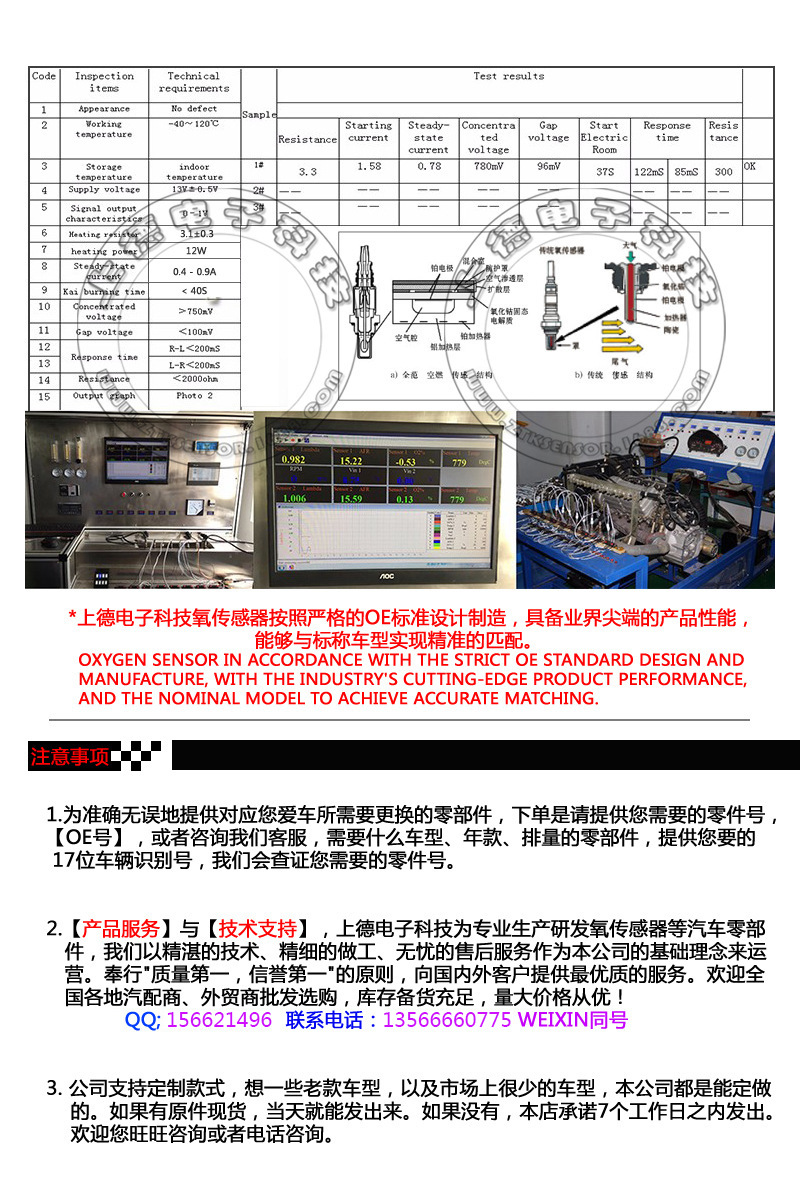 本公司为专业生产氧传感器的工厂,有自己的开发团队,优良的检测设备,优质的售后保证,铸就高品质的产品。本公司为各大外贸商供货,出口产品覆盖欧洲、北美、伊朗、俄罗斯、印度等全世界各地。现大力支持外贸商,速卖通亚马逊EBAY LAZADA WISH 批发出货.欢迎产品询价咨询.需要含税的外贸商备注。