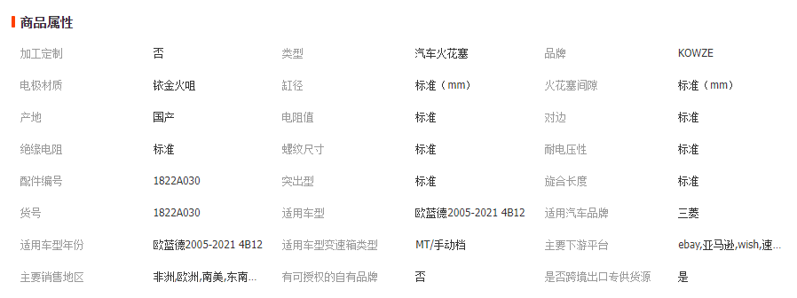 产品属性信息