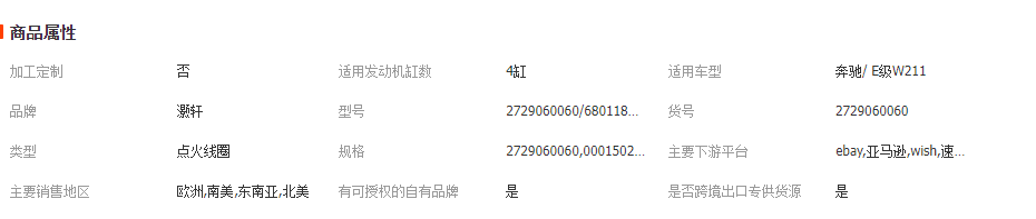 厂家直供点火线圈2729060060/68011844AA/UF585适 用奔驰汽车配件