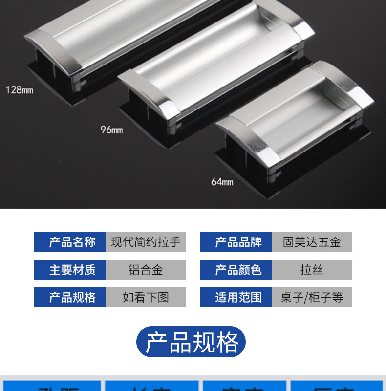 抽屉暗装嵌入式拉手文件柜门扣档案柜扣手移门推拉门铝合金拉手