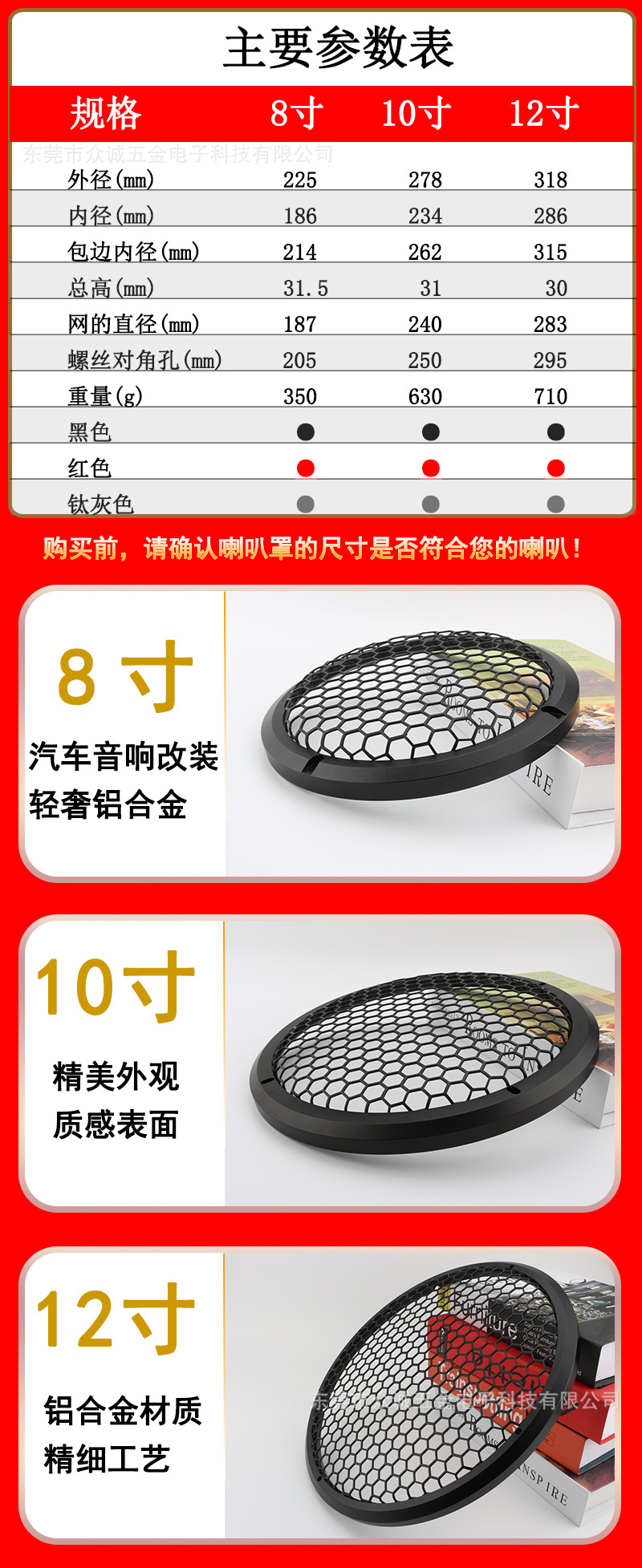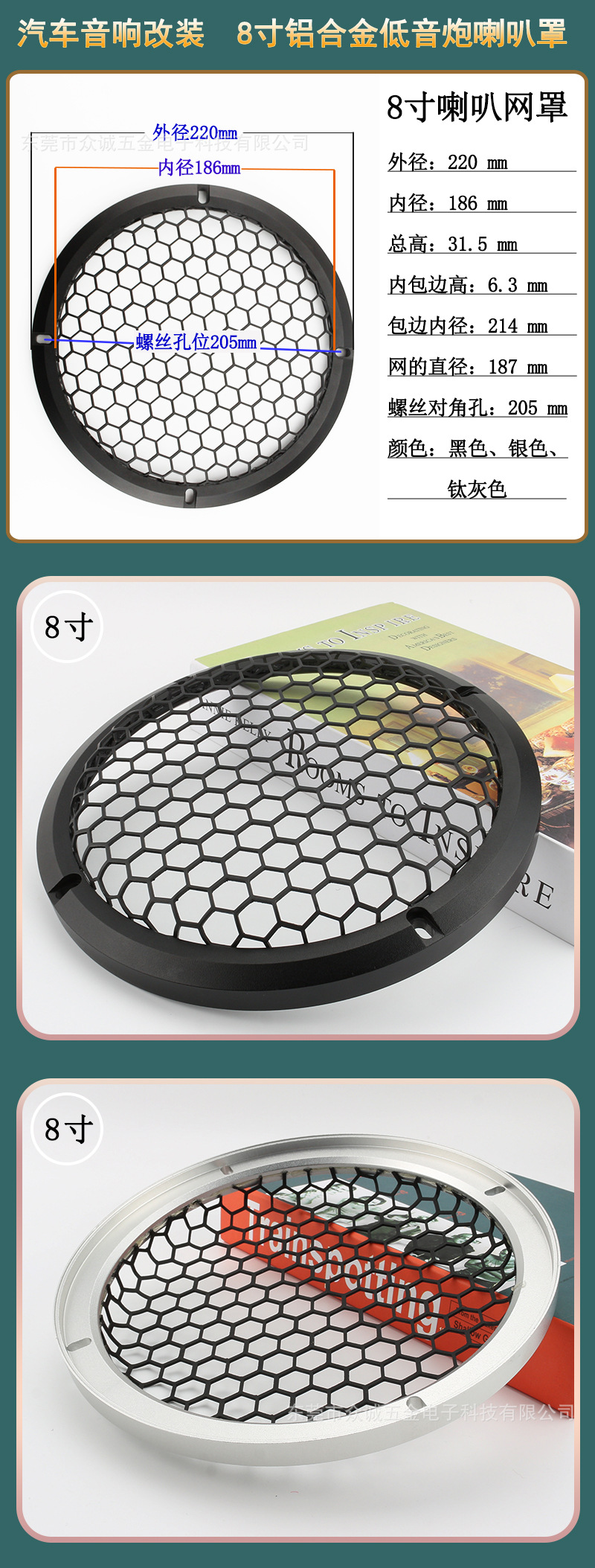 8寸 10寸 12 寸 汽车音响改装 家庭音箱喇叭保护网罩 铝合金材质