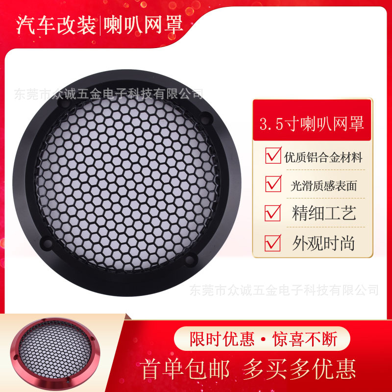 3.5寸中音喇叭网罩 汽车音箱网罩装饰圈 改装车门音响喇叭网 单个