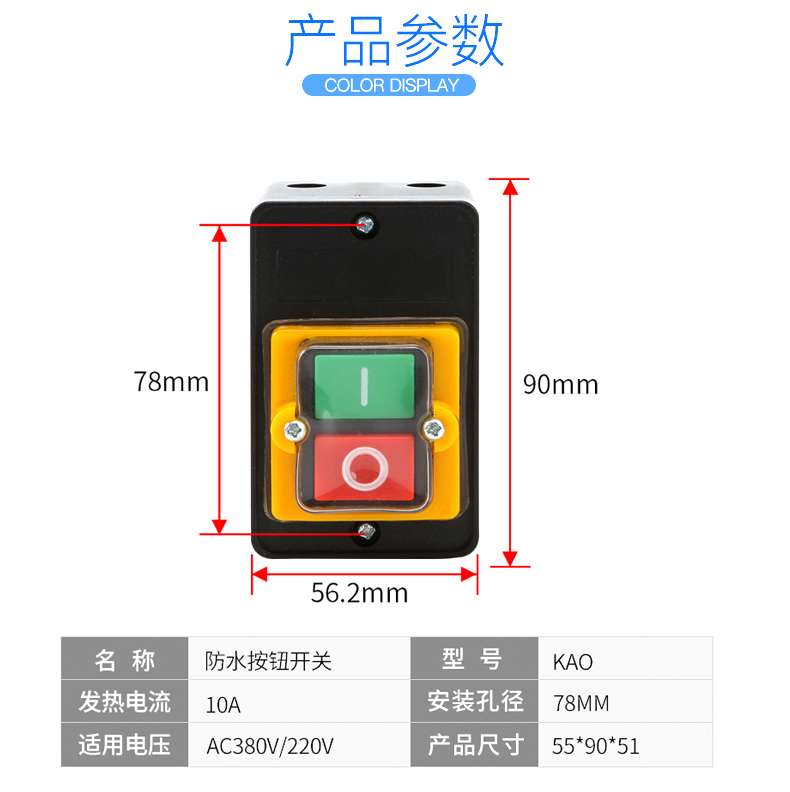 KAO-5H 5M防水型控制开关KA0-5M H 220 380V10A台钻按钮KAO-10KH