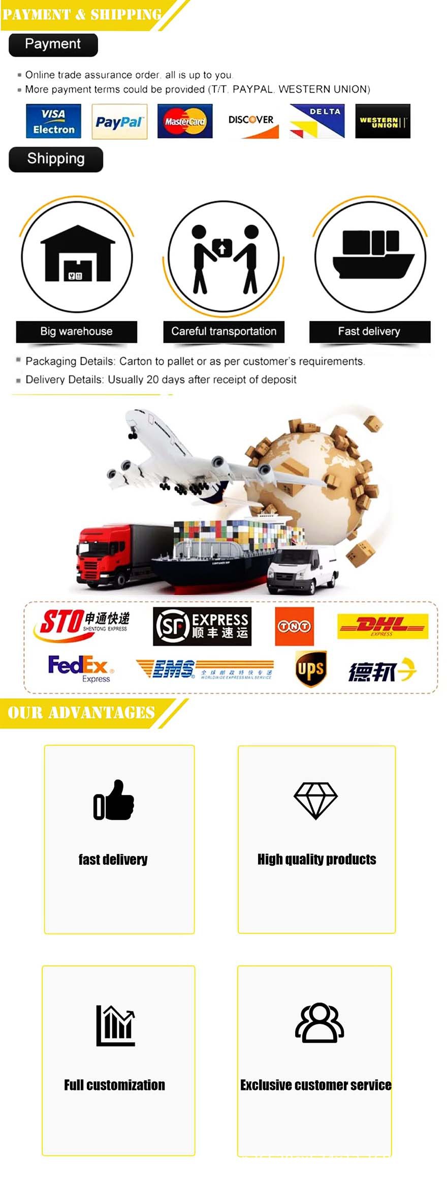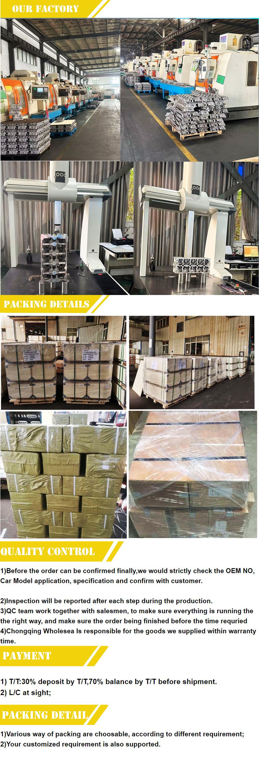 重庆众慧焱科技有限公司位于中国西南汽车产业基地重庆市。我们是一家专门从事汽车零配件、摩托车零配件和钢铁产品的供应商。随着业务的发展,我们在开始2023年就建立了一个专门的团队来开展国际业务。我们提供完整的汽车零件: 汽车发动机系统,汽车电气系统,汽车悬架和底盘系统。车身零件和汽车配件,我们专业开发,设计和销售70多种汽车零件,例如气缸盖,凸轮轴,连杆,曲轴,空气滤清器,机油滤清器、机油泵、涡轮增压器、齿轮箱、传动部件、交流发电机、起动机、分电器、转向齿条,转向泵,转向节,齿轮旋钮,汽车座椅,格栅,喷油器,传感器,控制臂,制动盘等。重庆PFT科技有限公司。汽车零部件涵盖轿车、卡车、公共汽车工程机械车辆适用于本田、丰田、日产、奥迪、大众、宝马、奔驰,现代、起亚、沃尔沃、铃木、五十铃、长城、塔塔等。我们正在更新I S O 9 00 1认证的要求,以确保最新的质量标准。因此,我们的产品得到了国际客户的友好反馈,主要出口到美国,英国,波兰,法国,西班牙,非洲,南美等许多国家。我们将注意力集中在全球市场上。