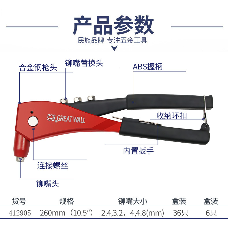长城精工拉帽枪铆钉枪手动抽芯拉钉枪拉铆枪铆钉抢打钉器拉丁枪钳