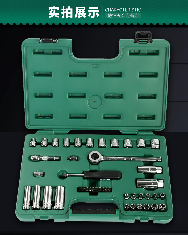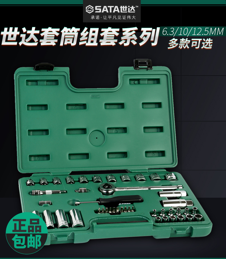 世达汽修工具套装44件小飞中飞套筒扳手快速扳手多功能五金工具箱