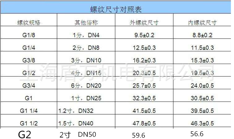 螺纹2分 1/4,螺纹3分 3/8,螺纹4分 1/2