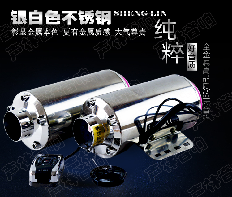 本低音炮适合用于摩托车,电瓶车,分为普通款,和带魔音款,普通款是炫彩不锈钢,魔音款是银色不锈钢外壳,零售送内存卡,批发不送内存卡,需要单独购买,另外,单独批发,价格可以另外谈,详情咨询13710125000,本产品,淘宝价是255元,欢迎批发,加工,定制,支持电动车摩托车厂商长期合作或者根据要求定制,支持淘宝商家拿货批发。具体联系客服或者电话联系我们。量大重邮,本产品长期出口东南亚,非洲,欧美等地区。