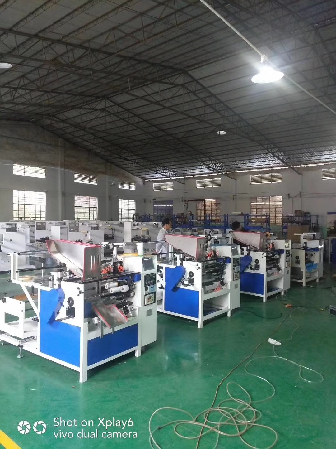 高速全自动遮蔽膜胶带贴合机,一个人可以操作5台机器,效率高,产品非常整齐。