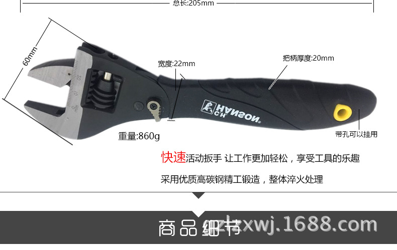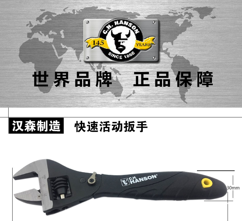 美国C.h.hanson汉森快速活动扳手8寸大开口扳手开口30mm