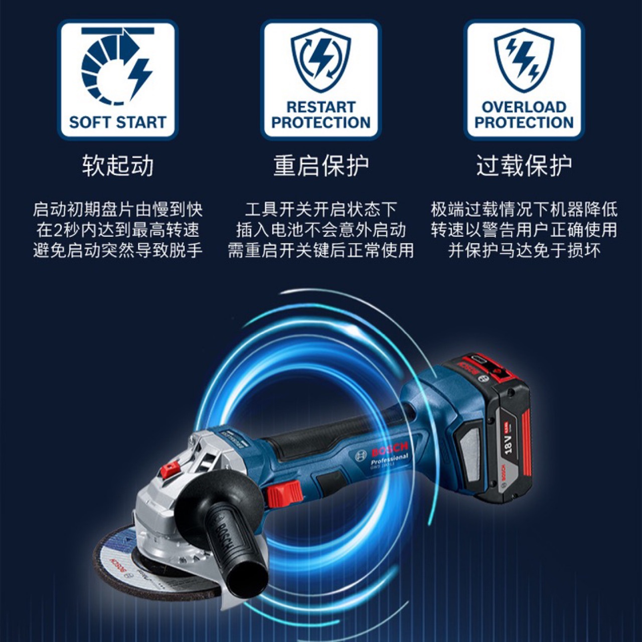 博世锂电充电式手提角磨机GWS18V-Li无刷切割磨光抛光机电动工具