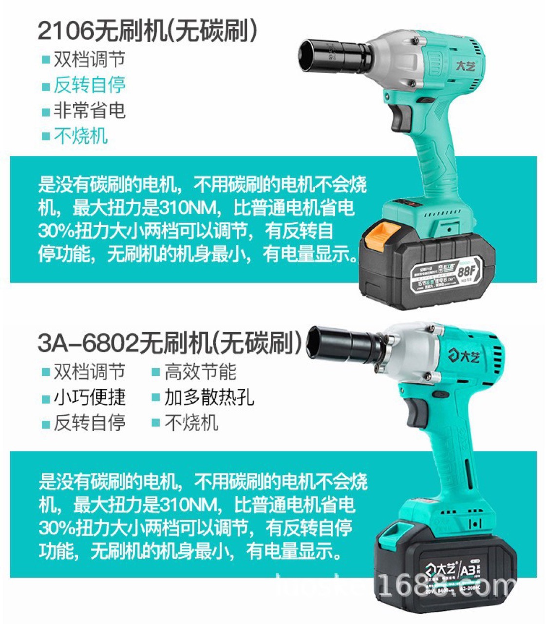 大艺电动扳手A3-6802新款无刷冲击架子工木工锂电扳手电风炮原厂