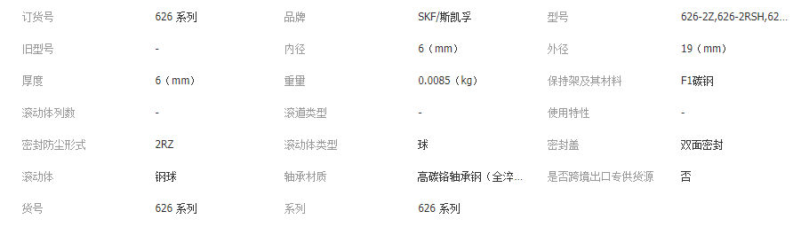 SKF斯凯孚 深沟球轴承 626 系列 授权专卖店