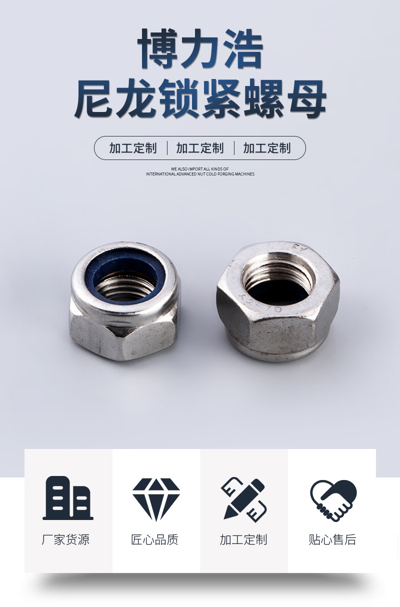 不锈钢A2-70尼龙锁紧螺母 M8自锁螺母防脱 DIN985螺帽批发