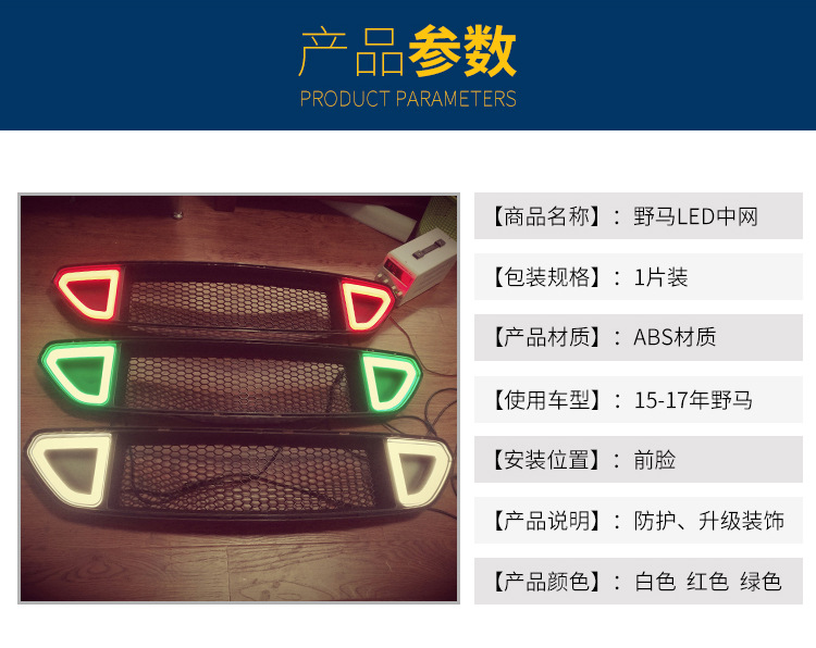 mustang野马LED中网(白光)(红光)(绿光) 野马改装带灯中网