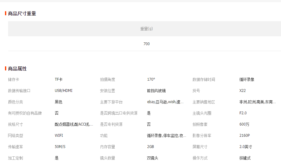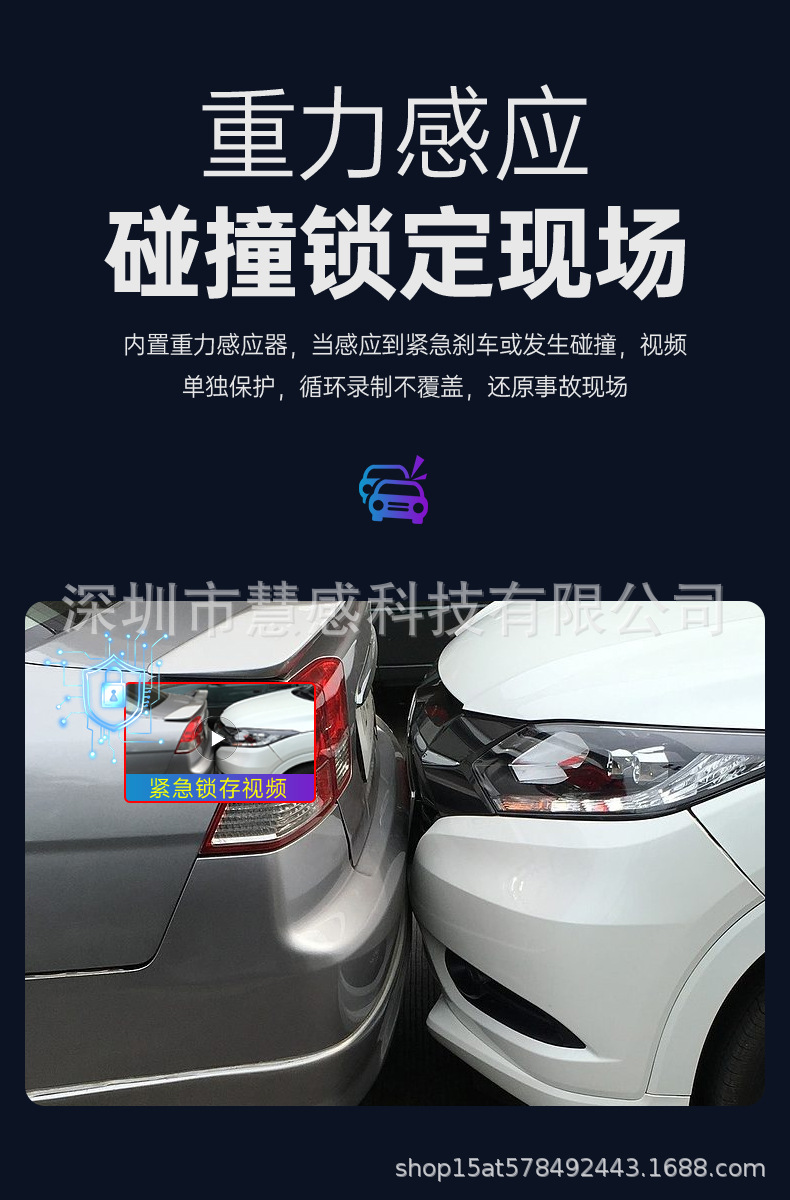 外贸新款2寸高清屏幕WiFi互联 停车监控 高清夜视 声控行车记录仪