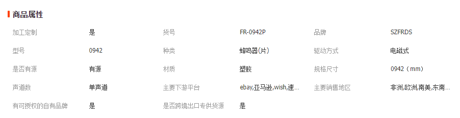 芙蓉电声0942一体有源直流9*4mm蜂鸣器 3V 5V 12V电磁式 通电就响