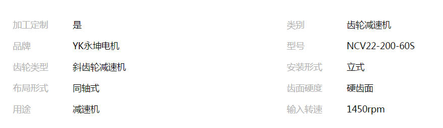 YK永坤电机立式齿轮减速电机NCV22-200-60S