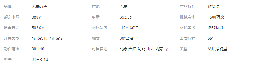 叉形摆臂型行程开关JDHK-1U 可耐高温 专业生产