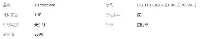 德国ELECTRONICON电力电容器E62.C81-102E40高压电力电容